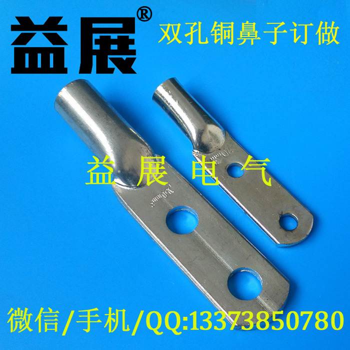 DTG雙孔管壓銅鼻子,鍍錫雙孔線鼻子,訂做非標銅鼻子,非標雙孔銅鼻子加工訂做,益展電氣有限公司